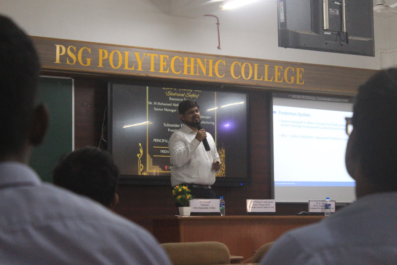 PSG Polytechnic College, Department of Electrical and Electronics Engineering along with Schneider Electric India, Bengaluru jointly established “PSG-Schneider Electrician Training Centre” at PSG Polytechnic College. This lab is sponsored by Schneider India Foundation Limited, Bengaluru. Laboratory is equipped with all Electrical Wiring and demo boards with necessary accessories and tools. This centre will be utilised by the students of EEE and allied branches, PSG Polytechnic College, PSG Industrial Institute and Skill Training Students.